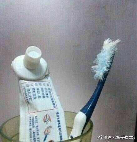 仔细看看这些图片,有人的毛巾已经用到不成形,好几个洞破的比拳头还要大,甚至连纤维都出来见人;有人则是一双拖鞋穿到头部硬生生断开,却还是用订书机订了十几针继续穿;还有人把牙刷的毛刷到彷彿被台风肆虐过,柔软的毛整个往旁边岔开,看起来像洗锅子的鬃毛刷一般。