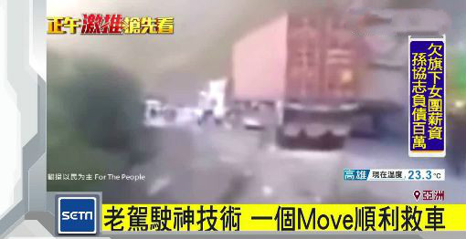 大伙忍不住欢呼,原来经验老道的司机竟然用高超的技巧,三两下就让车子脱困回到安全的道路上,司机谨慎用车头牵引,将后头的货柜缓缓拉上悬崖,艺高人胆大!顺利帮自己和货车、货品平安脱困。