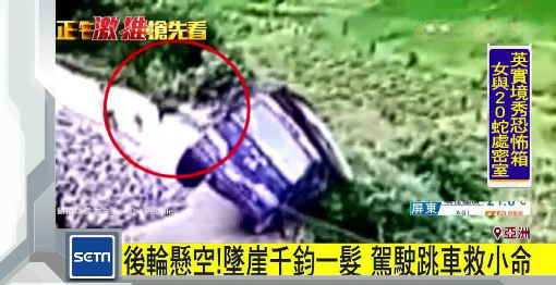驾驶车后轮悬空,差一点就要掉下悬崖。
