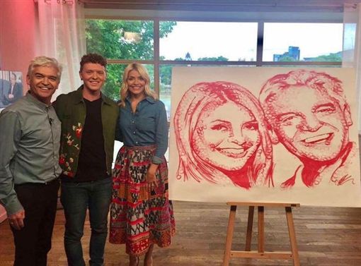怀伯恩用100个吻画《英国达人》节目主持人。