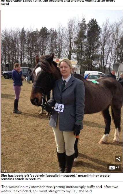 英国布里斯托有一名女子约曼(Kelly Yeoman)日前动了「微创手术」,导致她的肠道受损,现在她只要一进食,粪便就会从她口中吐出。目前她的家人正在筹募资金,希望能尽速将她送到伦敦的私人医院接受治疗。