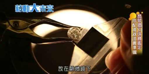 珠宝鉴定所所长黄杰齐:「从这边跑出来的红外线经过手鐲之后,到了这边的红外线的解析图里面以后,传到我们电脑之后,这时候可以看到手鐲含有树脂成份。」含有树脂的翡翠就是B货,也就是说这只翡翠手鐲一点都不值钱。还有bling bling的闪亮钻石,鉴定也有步骤。